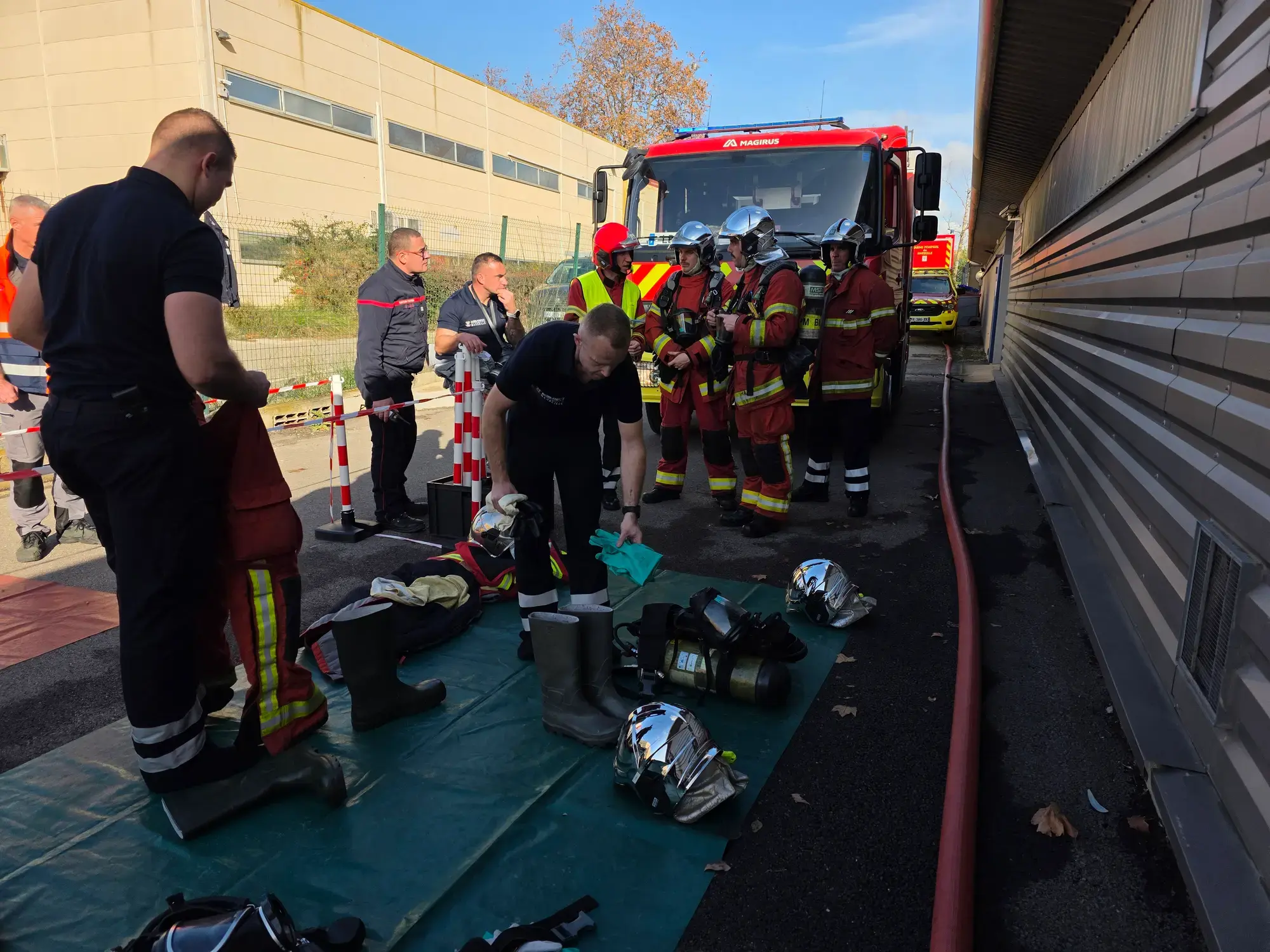 Pour la réalisation des exercices, un fourgon incendie armé en personnel, un véhicule de risque technologique armé en personnel et un chef de groupe RT BMPM ont été mis à disposition des stagiaires.